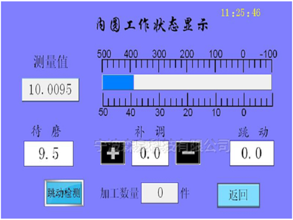 當(dāng)各種數(shù)值都設(shè)定好后,在“加工中操作面板”點(diǎn)擊“啟動”按鈕,便進(jìn)入自動測量狀態(tài)(儀器上電時自動進(jìn)入)。外徑與內(nèi)徑對應(yīng)不同的工作狀態(tài)顯示界面,分別如下圖所示: